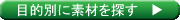 どのソフトで作るか「製品別サンプル集」で、何を作りたいか「目的別素材集」で、「写真/イラスト」の素材はテーマごとで、各々カテゴリー別でお探しいただけます。また、弊社ソフトをご利用にならない場合でも利用できる素材も提供しています。 |
