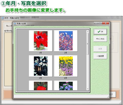 12ケ月分の写真をまとめてオリジナル写真に差し替え、などの操作もカンタンに行なえます。