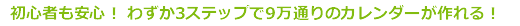 初心者でもカンタンにオリジナルカレンダーを作成できる従来のインターフェースはそのまま継承し、3ステップでオリジナルカレンダーを作成できます。