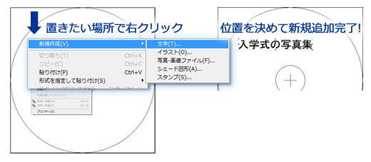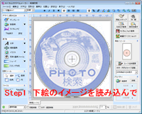 お手本用のディスクやケース画像をスキャナ等で取り込み、上に文字やイラストを載せるだけで、カッコいいレイアウトを真似して作成できます。 ※ 下絵として読み込んだ画像は、印刷されないオブジェクトとして設定されます。 |