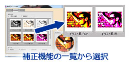画質調整時には、オススメの調整方法を一覧表示 ! 結果を見てから調整方法を決められるので難しいパラメータを意識することなく調整が可能です。 |