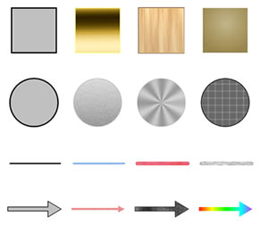 背景フレーム集からサンプルを選ぶだけで、文字を載せやすく帯を乗せたり、エンボス風にしたりなどの加工も可能 ! |