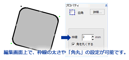 図形と文字を自由に組み合わせて、自分だけのオリジナルスタンプが作成できます。