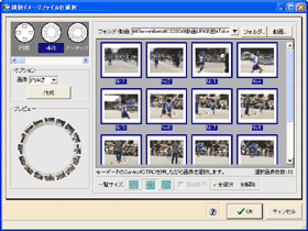 【キャプチャの追加】をクリックすると、映像を取り込みます。【一時停止】をクリックすると、スクロールバーの横にある【コマ送り】ボタンが有効になるので、気に入った映像を取り込む時にとても便利です。ここではお気に入りの画像を複数選択しておきます。
