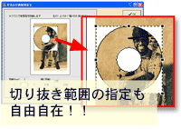 『らくちんCDラベルメーカー2006』では、編集画面で直接背景柄の切り抜き位置の指定ができるようになりました!