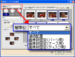 好評の複数画像のレイアウトパターンを「連続配置」「パーツ用」「ケース用」「ディスク用」と使いやすく分類。一度設定をした複数画像オブジェクトを再選択してレイアウトを変えることなく、貼り直しが可能に。収録パターンが38パターンに増量。
