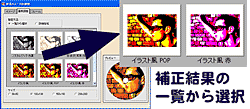 画質調整時には、オススメの調整方法を一覧表示!結果を見てから調整方法を決められるので難しいパラメータを意識することなく調整が可能です。