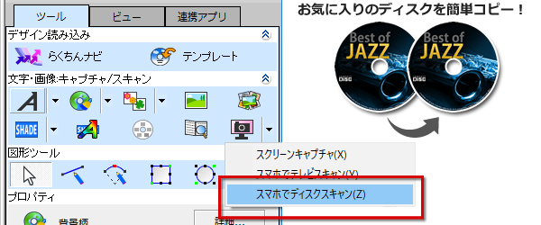 お気に入りのディスクデザインをコピーして印刷できる、ディスクスキャン機能がついに内蔵されました!完全連携でスムーズにレーベルコピー&印刷できます。