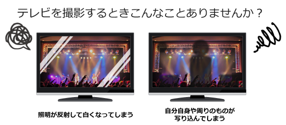 最近のテレビは大型化により、カメラでもきれいな画像を撮影することができます。しかし、撮影環境によっては照明が反射してしまったり、自分自身や周りのものが写りこんでしまったりします。