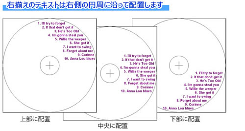 テキストを右揃えにすると、右側の円周に沿って配置されます!
