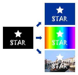また、登録した図形は、色を変更したり、グラデーションをつけたり、写真と合成したりすることが出来ます。