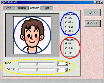 もちろん、白黒にチェックを入れればイラスト/画像はモノトーン加工可能!!