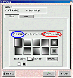 | グラデーションカラーの背景柄も簡単に作れます!!
