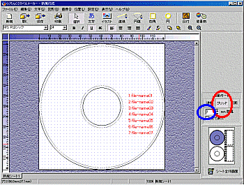 グリッドラインを表示させる場合には、<グリッド>ボタン