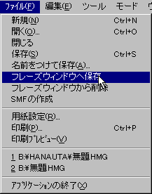 フレーズウィンドウに保存するには、まず保存したいフレーズを選択し、ファイルメニューから“フレーズウィンドウへ保存”をします。