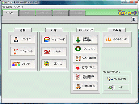 「らくちん名刺&カード」は下記ジャンルのカードデザインをカンタンに作成することが出来ます。