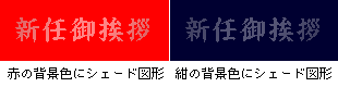 例えば、色つきの背景にシェード図形を乗せると・・・。