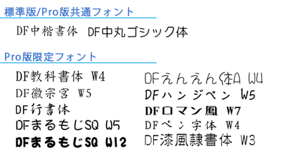 名刺やカードに便利な和文フォントを収録![Pro版12書体][標準版2書体]