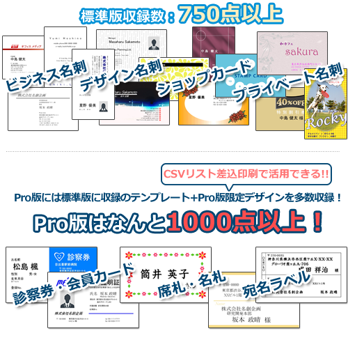 豊富なデザインテンプレート収録[Pro版1,000点以上][標準版750点以上]