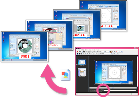 動画に文字や図形を書き込めるので、操作マニュアルを作成するときに便利です!