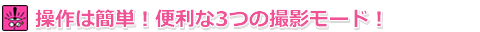 静止画、動画をそれぞれのモードで撮影できます。