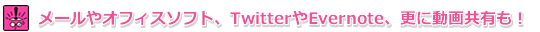 例えば、地図に訪問先の社名/担当者名/部署や、待ち合わせの時間などのメモを書き添えて、携帯にメールすれば、もう無駄に印刷する必要もなくなります。