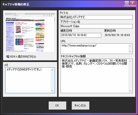 WEBサイトを撮影すると、中の文字(テキストキャプチャ情報)やURLの情報も取得できます。