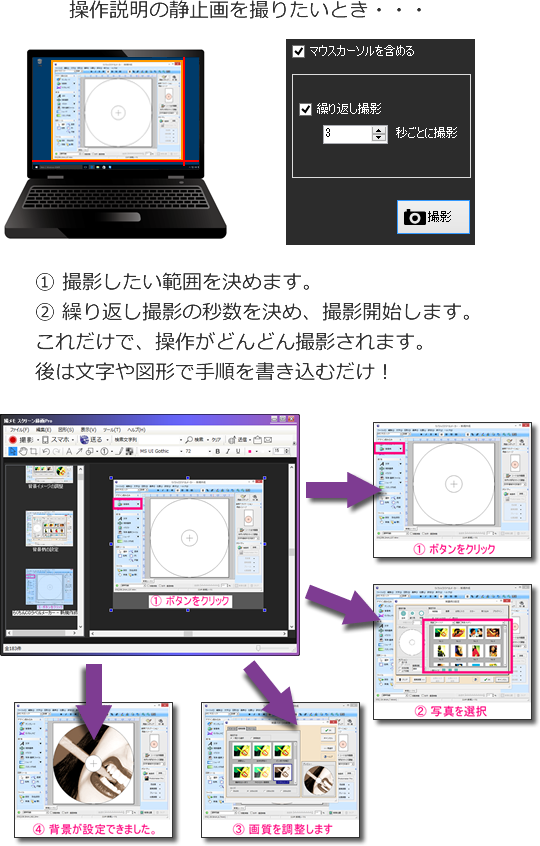 動画に文字や図形を書き込めるので、操作マニュアルを作成するときに便利です!