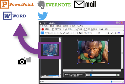 ボタンクリックで簡単操作!画像をメールで送ったり、TwitterやEvernoteに文書付きで送信できます。