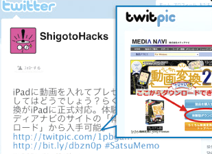 気になった商品情報やWEBサイトなどの画面を撮影してコメントを書いて、そのままTwitterに投稿できます。