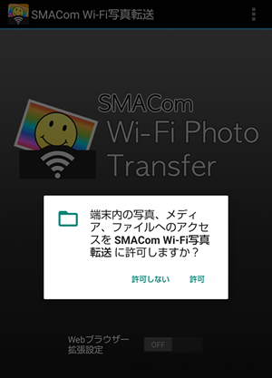 アプリを起動します。下記のようなメッセージが表示されましたら、「許可」をタップします。