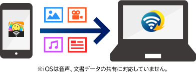 - PC→スマホへの転送:パソコンのデータをスマホへ転送