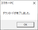 「ダウンロードが完了しました。」ダイアログが表示されたら転送完了です。