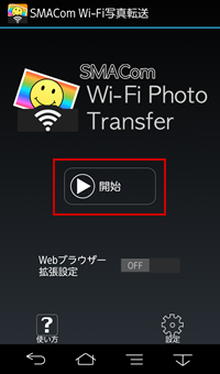 アプリを起動して、「開始」ボタンをタップします。