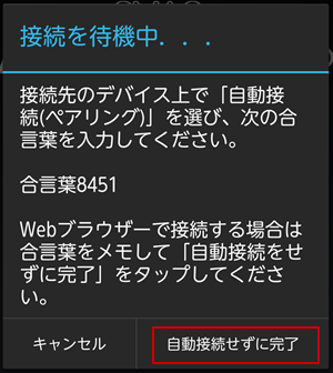 接続待機に切り替わったら、「自動接続せずに完了」ボタンをタップし完了させます。
