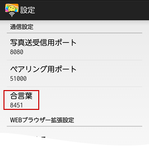 ※合言葉は設定画面で確認できます。