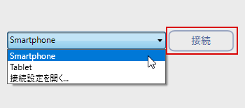 デバイスの選択ドロップダウンリストから該当のデバイスを選択し、「接続」をクリックします。