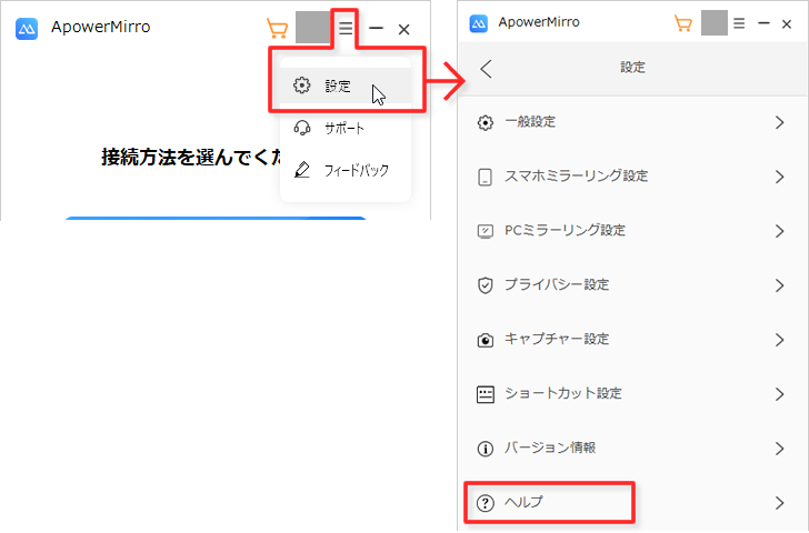 設定メニュー内の「ヘルプ」から開発元のApowersoftの公式ガイドをご覧いただけます。