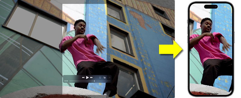 動画の一部だけズームアップして保存したり、縦長動画の作成もできます。もちろん保存時に高解像度化すればズームした部分が鮮明になります。