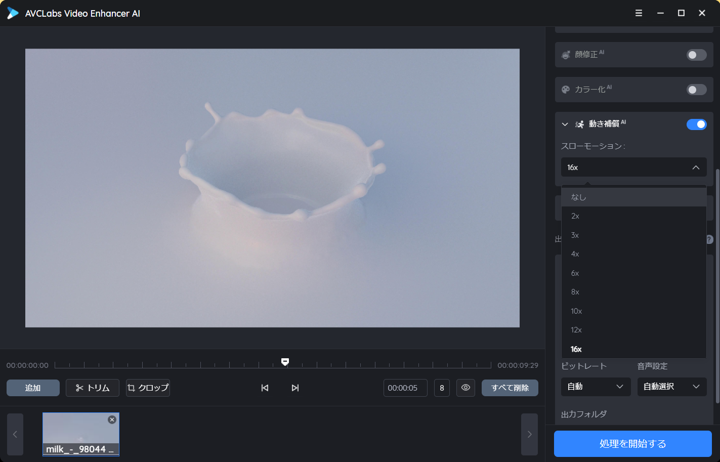 スローモーション動画を作成できます。最大16倍まで設定できます。