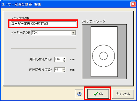※ここでは「ユーザー定義 CD-R74TWS」と入力します。