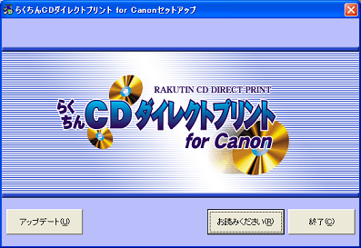 - 「らくちんCDダイレクトプリント for Canon」のプログラムアップデート用インストーラを起動し、画面の指示に従ってアップデートを行ないます。