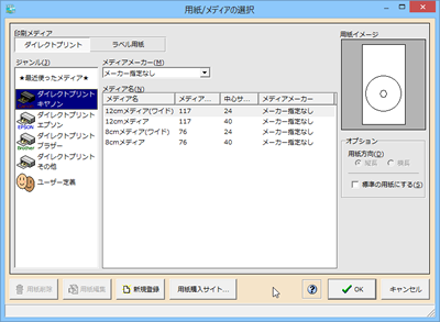 | Q10. バージョンアップしたところ、ダイレクトプリンタに以前のバージョンのようなメディアの品番がなくなっていました。どのように使えばいいのでしょうか。