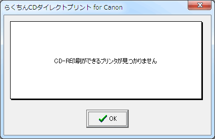 | Q3. 『CD-R印刷ができるプリンタが見つかりません』と表示されて「らくちんCDダイレクトプリント for Canon」が起動しません。
