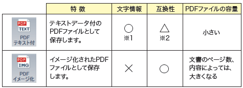 ※1 テキスト付PDF保存で期待した出力結果にならない場合は、イメージ化のPDF保存をお試し下さい。