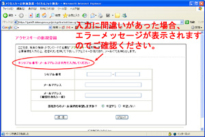 | Q1. アクセスキーの新規登録ページで、購入したシリアル番号を入力すると「シリアル番号を正しく入力してください」というエラーメッセージが表示されます。