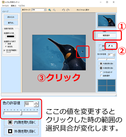 | Q2. ワンクリックで切り抜く方法(色選択機能)のやり方を教えてください。 以下の動画も参考にしてください。 | |