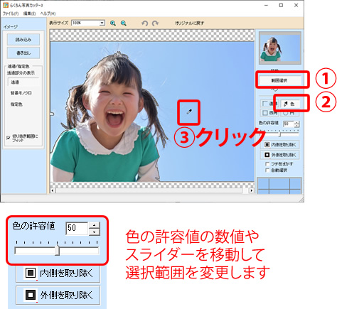 | Q2. ワンクリックで切り抜く方法(色選択機能)のやり方を教えてください。