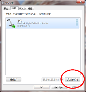 手順3. 「録音コントロール」画面のメニューバー<オプション(P)>-<プロパティ(R)>を選択します。