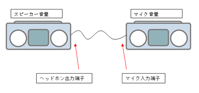 ステレオミキサーでの録音は、例えるならば「2台のラジカセのヘッドフォン端子とマイク端子を直結」した時と、同じ状態になります。